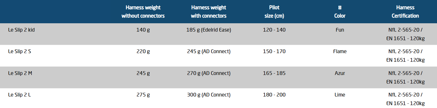 Le Slip is the first harness developed by Air Design. The perfect harness for every pilot who wants to lighten his/her backpack with the same spirit that we put in our wings: light, secure and fun. Built in durable materials, Le Slip makes you feel at ease in the air and on the ground: automatic and easy hand-free stand-sit transition; made for hours of flight and ground handling. Comfortable and lightweight here comes Le Slip!